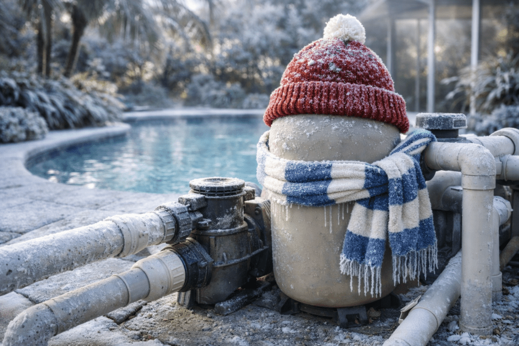 With overnight temperatures expected to dip below freezing in Central Florida, homeowners often ask whether they should run their pool pump overnight. In most cases, keeping water moving during freezing conditions helps reduce the risk of frozen pipes or equipment damage. Every pool system is different, and factors like plumbing layout, insulation, and exposure can affect freeze risk.